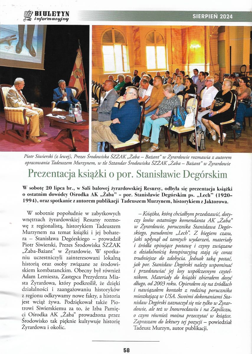 „Porucznik Stanisław Degórski pseudonim Lech (1920–1994). Szkic do historii ośrodka ‘Żaba’ i ‘Komar’ Armii Krajowej w Żyrardowie”.