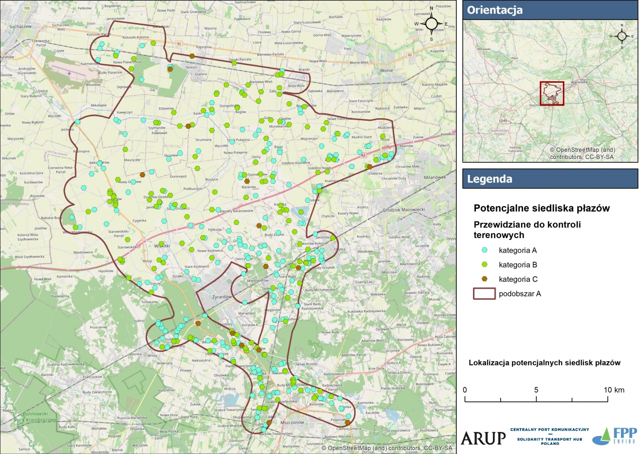 W kwietniu odbędzie się kontynuacja prac - pojedyncza kontrola w wyznaczonych na mapie miejscach. Są to miejsca otwartych pól uprawnych, o potencjalnie niskiej wartości przyrodniczej (brak cennych siedlisk, czy rzadkich chronionych gatunków). Odwiedzane będą lokalizacje na terenach otwartych w całym podobszarze A.